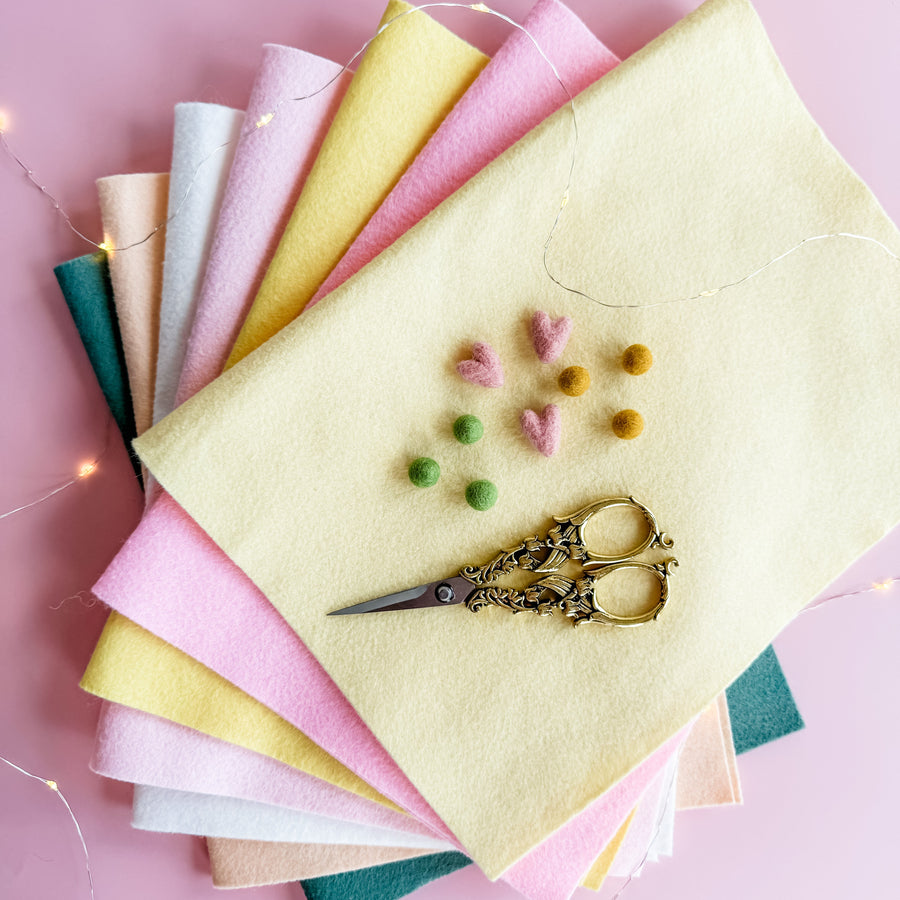 Handcrafted from premium wool-blend felt, each daisy is thoughtfully shaped, dyed and assembled by hand, creating a piece rich in texture and natural beauty. Set along a flexible base with soft greenery, this crown brings together comfort and durability while maintaining its light, graceful feel.